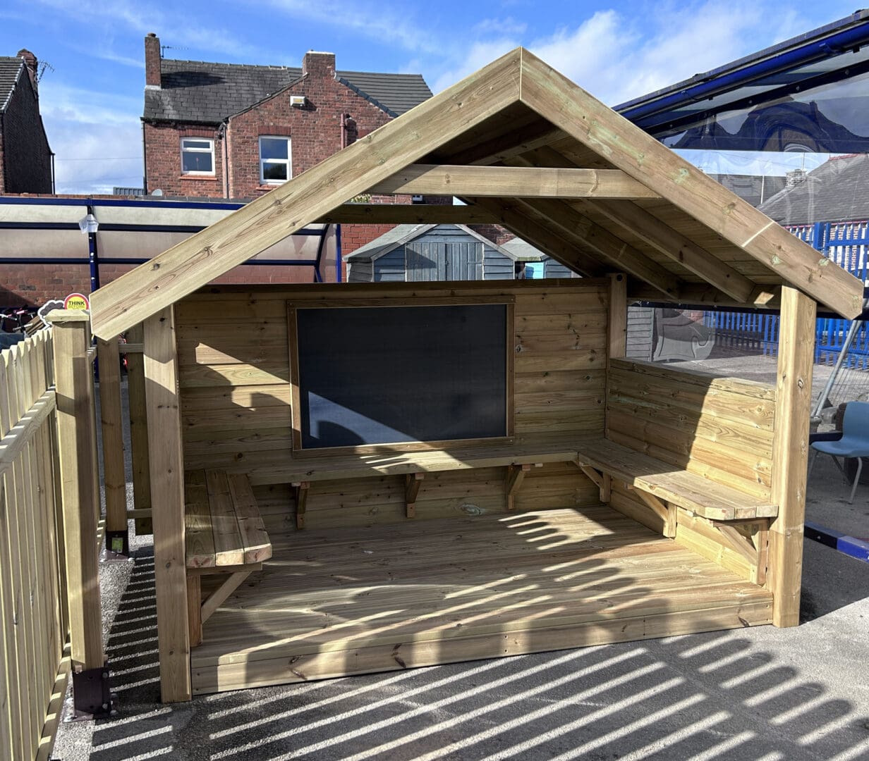 With its natural timber structure, open design, and inviting layout, the Art Playhouse provides a warm and welcoming environment that seamlessly blends into any outdoor setting. Built-in bench seating offers a comfortable space for little artists to sit, collaborate, and let their creativity flourish. Whether used for solo exploration or group projects, this playhouse fosters collaboration, communication, and imaginative storytelling.